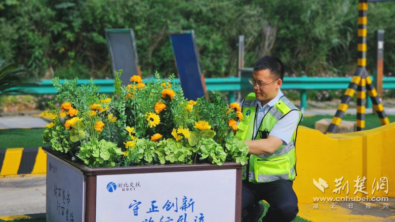 大王管理所工作人员在办公楼外墙、收费广场两侧整齐悬挂国旗与彩旗,鲜红的旗帜迎风招展,尽显节日的庄重与热烈;收费岛花坛内,万寿菊、一串红等时令花卉精心搭配、错落绽放,五彩花簇与鲜红旗帜相映成趣,让大家能直观感受节日的喜庆与祥和。
