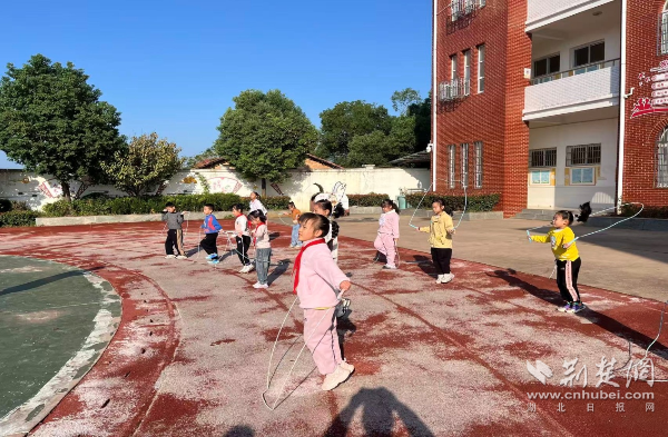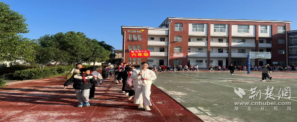 荆楚网(湖北日报网)讯(通讯员曹志勇、林新华)上午的阳光洒在仓埠街杨裴小学的操场上,伴随着《运动员进行曲》的激昂旋律,学生排着整齐的队伍从教室涌向操场——对于这所仅有6个教学班、111余名学生的农村小规模学校来说,每天30分钟的大课间,早已成为校园里最具活力的“固定节目”。没有华丽的道具,没有专业的指导,却凭着“全员参与、因地制宜、趣味优先”的原则,让小小的校园里迸发着大大的能量。
