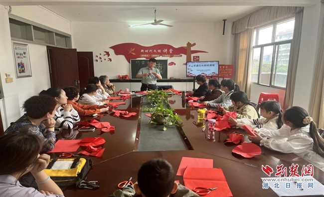 6月20日,鄂州市级剪纸传承人顾德在和贵园社区“非遗文化剪纸课堂”授艺。