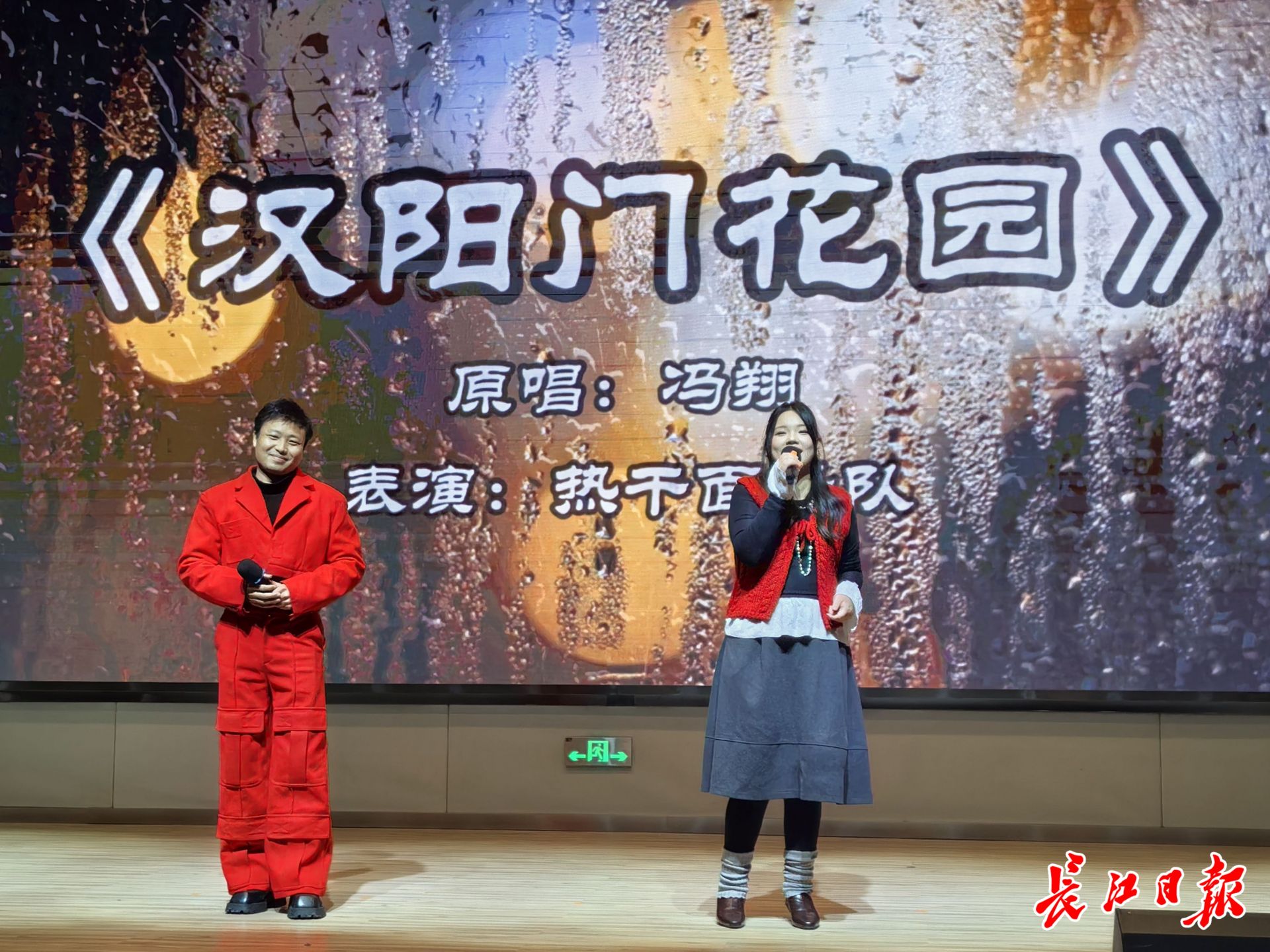 热干面乐队两位优秀歌手现场演唱了由武汉民谣音乐人冯翔创作的《汉阳门花园》和原创歌曲《武汉话》。热干面乐队原创歌曲《武汉话》欢乐俏皮气氛热烈,带动了现场观众自发大合唱。热干面乐队创始人、武汉经典传唱人肖俊华专程带队现场指导。肖俊华表示,热干面乐队作为武汉本土乐队,歌曲突出武汉特色元素,展现大美武汉,宣传武汉美景美食,让更多朋友通过我们的歌声认识武汉来到武汉,未来我们希望长期参加长江公益活动,一起传递榜样正能量。