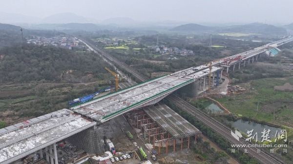 荆楚网(湖北日报网)讯(通讯员王可 叶喆 王子明)3月26日14时35分,历经75分钟连续作业,由湖北交投鄂东建设管理有限公司投资建设、中铁十一局承建的鄂州机场高速公路二期工程跨武九铁路转体桥顺利完成转体施工,平稳上跨国家重要干线铁路武九铁路,为项目早日建成通车奠定坚实基础。